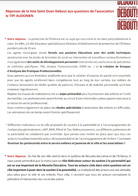 Réponse de la liste Saint Ouen Debout portée par Laurie Lefèvre